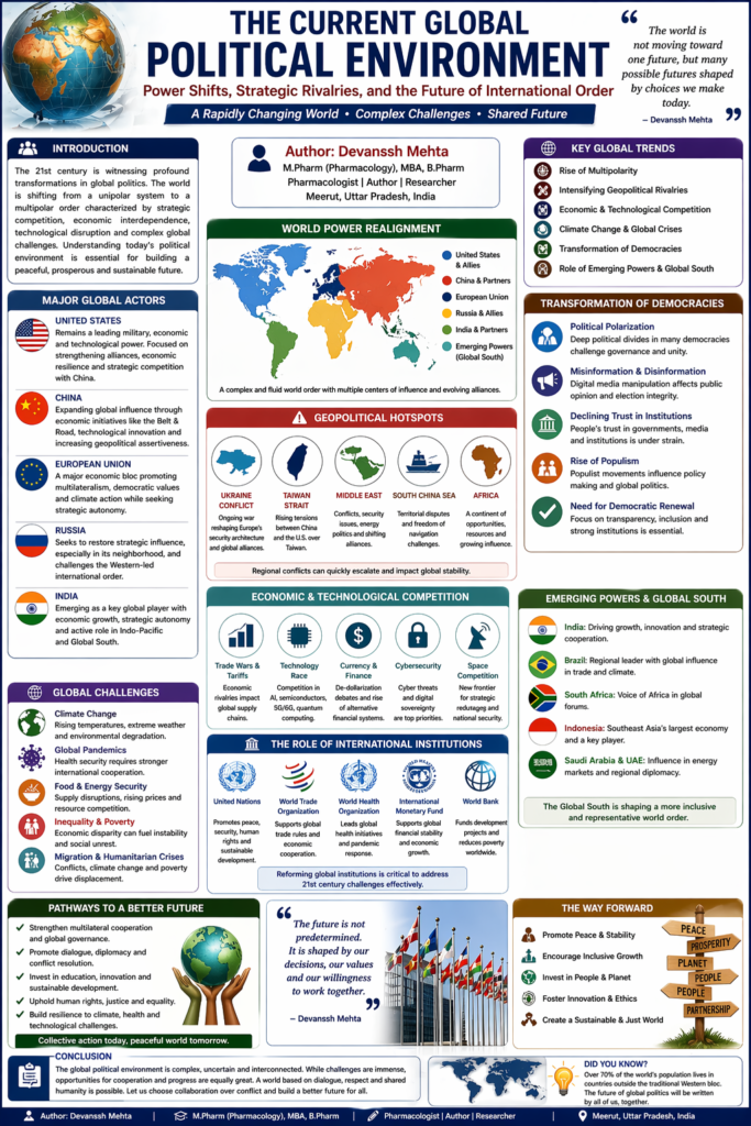 The current global political environment reflects a world in transition. The rise of new powers, the resurgence of geopolitical rivalry, technological transformation, and evolving democratic institutions are collectively reshaping the international order.
